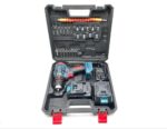 به همراه لوازم همراه؛ مته آهن( سایز ۳، ۴ و ۵ میلیمتر)، مته چوب( سایز ۳، ۴ و ۵ میلیمتر)، رابط فنری تاشونده، سه عدد نوک پیچ گوشتی چهارسو و دو عدد دو سو ، دو عدد نوک پیچگوشتی t20 و t15، بکس(سایز ۴.۵، ۵، ۶، ۷، ۸، ۹، ۱۰، ۱۱، ۱۲ میلیمتر) و تبدیل بکس خور سر دریلی سایز ۱/۴
